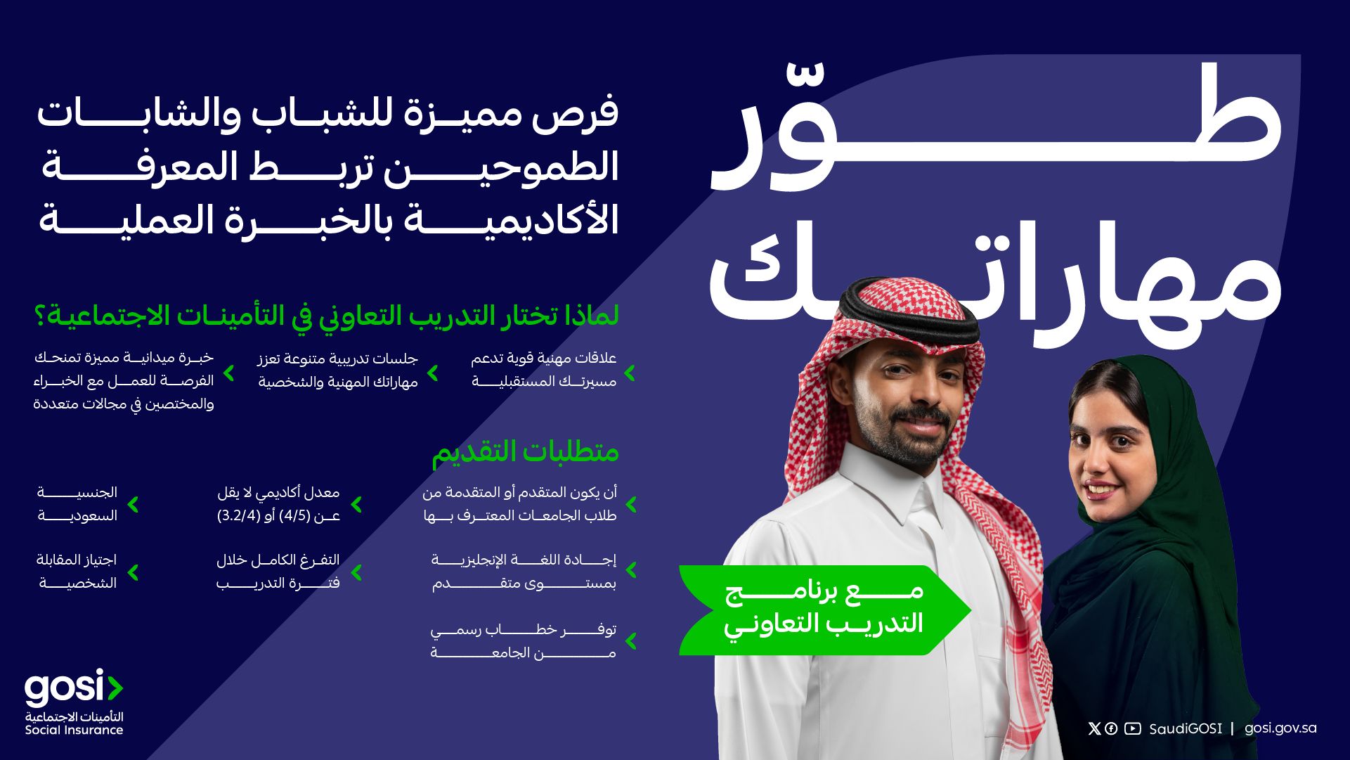 التأمينات الاجتماعية تعلن عن برنامج التدريب التعاوني للجنسين طلاب وطالبات