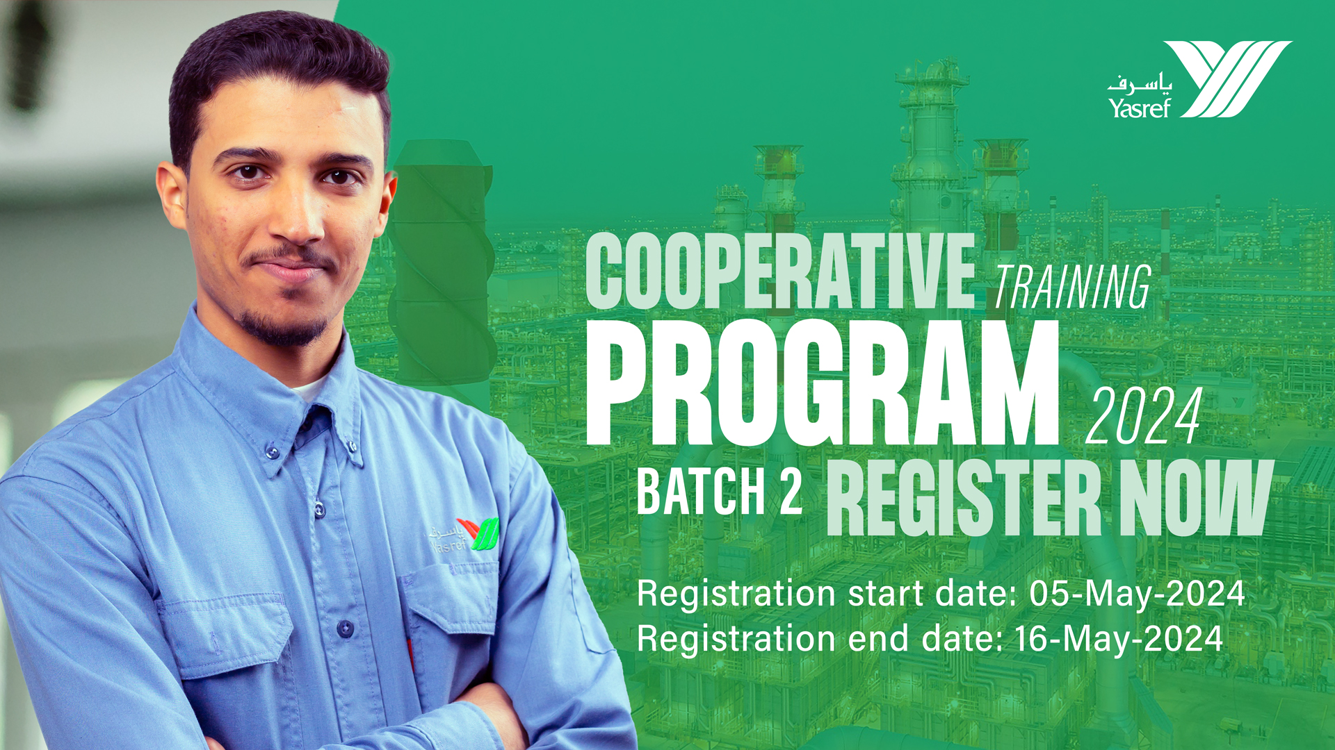تعلن شركة ينبع أرامكو سينوبك للتكرير المحدودة (ياسرف) في ينبع الصناعية فتح باب التقديم في برنامج التدريب التعاوني (الدفعة الثانية) للعام 2024م لطلاب الكليات والجامعات في مرحلة الدبلوم والبكالوريوس في مختلف التخصصات (الإدارية، التقنية، الفنية، الهندسية، العلوم) على النحو التالي: